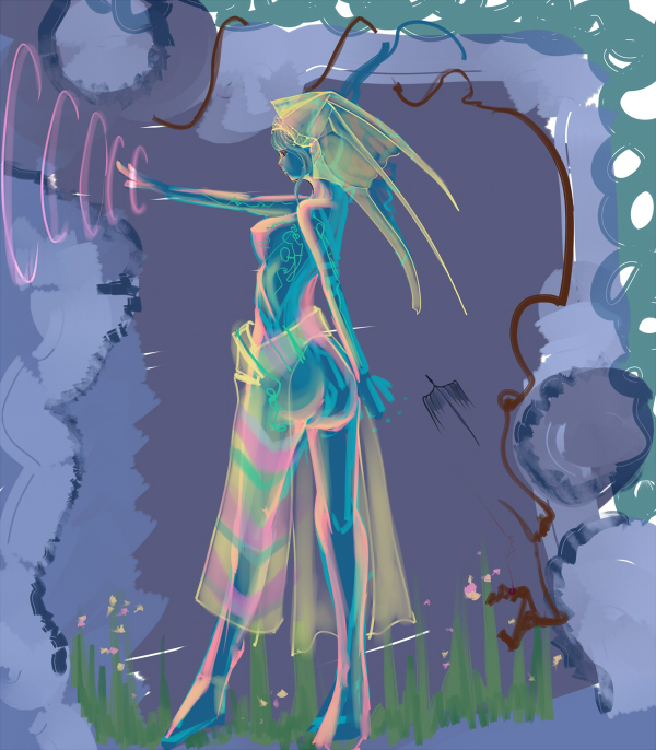 これはまずいってことで急遽、安定性バツグンのシルエット画法(仮称)に切り替えて軌道修正を施したのが下の絵ですよ。
